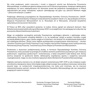 Inicjatywa dla tych, którzy przeżyli piekło płonącej Warszawy w roku 1944.