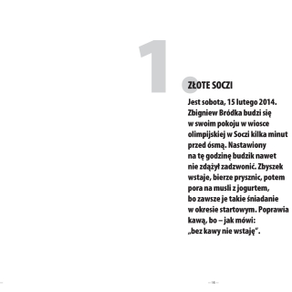 A znajdziemy w niej nie tylko historię niesamowitych i niezwykłych okoliczności zdobycia złotego medalu na igrzyskach w Soczi w 2014 roku, gdy Bródka wyprzedził w wyścigu na 1500 metrów Holendra Koena Verweija o zaledwie 0,003 sekundy, ale także wiele anegdot i nieznanych faktów z życia sportowca łączącego pasję do panczenów z odpowiedzialną pracą zawodowego strażaka, który w czasie służby wyjeżdża do pożarów, wypadków i innych zdarzeń, gdy zagrożone jest życie i zdrowie ludzkie.